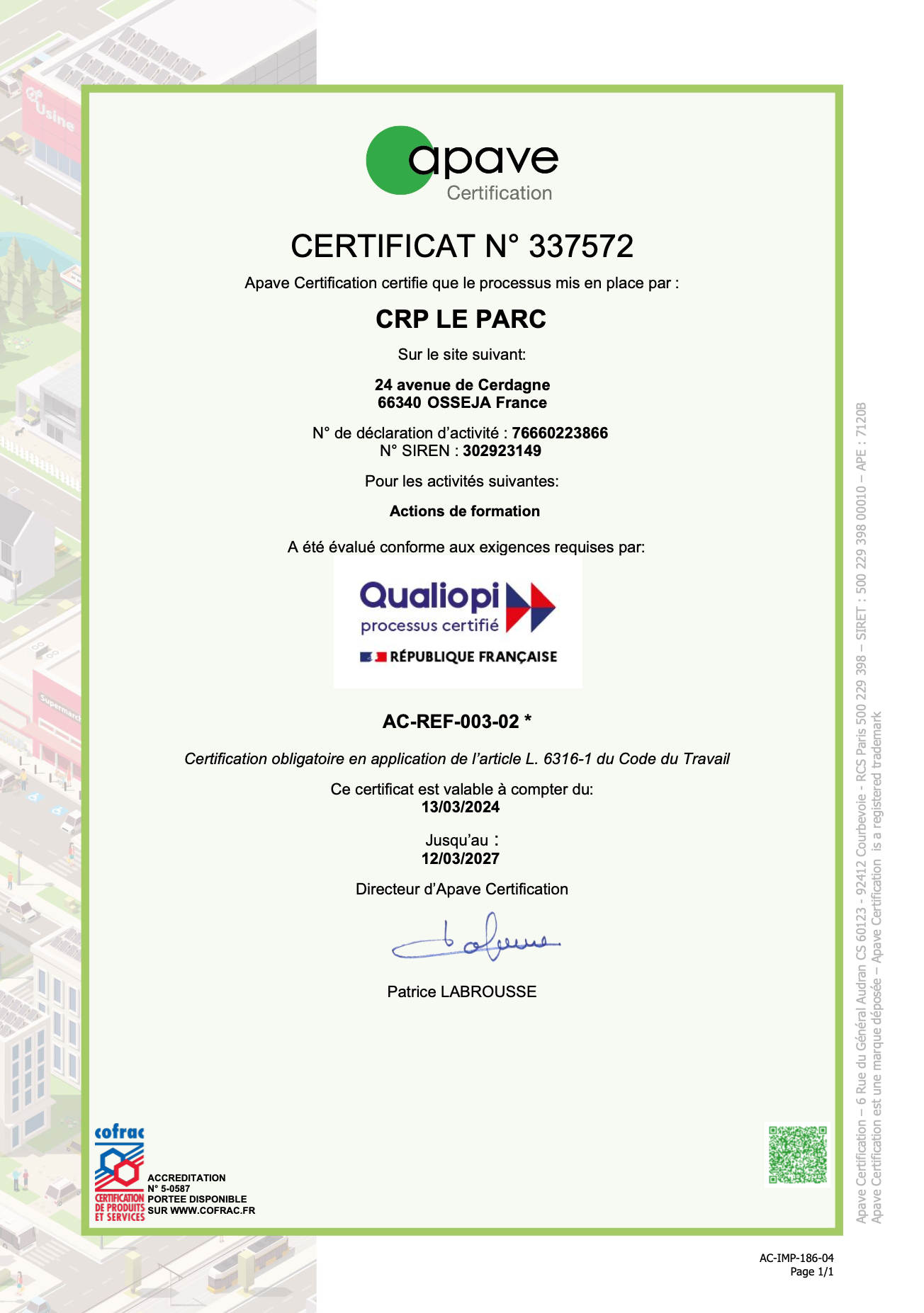 La certification Qualiopi atteste de la qualité du processus mis en œuvre par le Groupe Le Parc dans ses actions de formation. Obligatoire depuis le 1er janvier 2022, elle garantit que nos prestations répondent à des critères précis définis par l’État et contrôlés par un organisme certificateur indépendant.